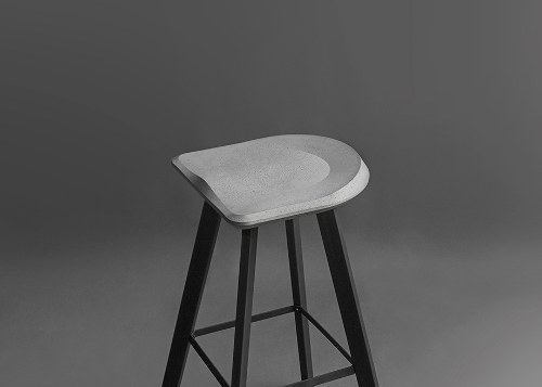 Gli stessi materiali riciclati vengono utilizzati per lo sgabello da bar e il tavolo Shen.